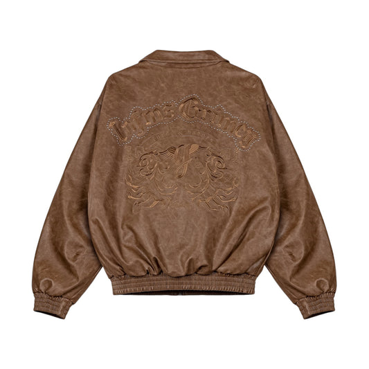 Chief Watcher Pu Leather Bomber Jacket / Brown
